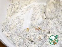 Смешиваем творог, сахар, мак, цукаты, если вдруг начинка жидковата, то нужно добавить 1 ст. л. муки |