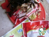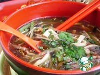 При подаче посыпать зеленью. Сервировать с ложкой и палочками. |