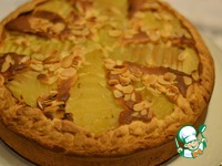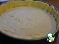 Форму 28см. выкладываем тестом, делая высокие бортики. К миндальному крему по частям вмешаем ванильный крем. Выливаем ванильно-миндальный крем на тесто. |