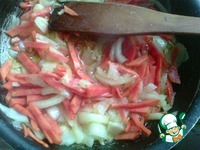 Варим картофель и капусту до полуготовности и добавляем зажарку. |