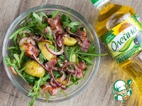 Описание: Всегда готовлю этот деревенский салат в первые деньки весны. Он сочетает в себе уют, теплоту зимы и легкость, свежесть весны. Деревенский он называется благодаря своим ингредиентам. Молодой теплый картофель в мундире, свежая зелень, бекончик с жирком, маринованные лучок. Подача с блинчиком делает его более богатым, сытным и красивым.