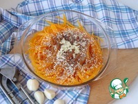 Описание: Овощи, очень хороши в качестве закуски, по этому, легкий, пикантный салат будет востребован на праздничном столе. Обычно, подобный салат, готовлю из моркови еще со студенческих времен. Но, в этот раз решила попробовать тыкву, она у меня с дынным вкусом. А кунжут добавил ореховые нотки. Получился очень вкусный и ароматный салат.