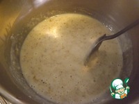 Для приготовления крема взбить молоко, сахар и муку. Нагреть до загустения, постоянно мешая. |