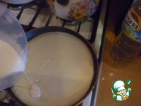 Также добавить муку, молоко и растительное масло Олейна. Взбить. Тесто получается жидкое |