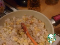 Начинка:. Филе трески нарезать на кусочки, посолить, поперчить. Лук и яблоки очистить и порезать кубиками. |