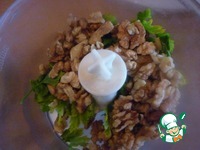 Соус: Орехи измельчить вместе с зеленью |