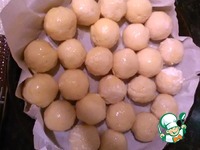 Растапливаем сливочное масло в микроволновке. Обмакиваем каждый шарик в масле и складываем на противень на пергамент |