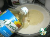 В получившееся тесто вливаем подсолнечное масло ТМ "Олейна", перемешиваем-тесто готово. Очень хорошее тесто-не будет прилипания, блины нежные и вкусные |