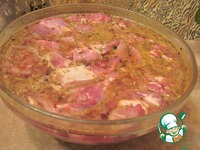 Для начинки режем мясо (у меня грудинка)и замачиваем в воде и всех специях и соевом соусе минимум на час |