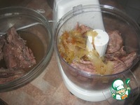 В чаше комбайна перемолола говядину (удалив протушенные помидоры)с жаренным луком |
