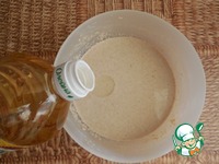 Когда тесто настоится, сковороду нагреть на среднем огне и налить немного масла. В тесто добавить 1 ст л растительного масла, перемешать. |
