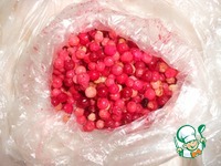 Бруснику замороженную обдайте кипятком и выложите в дуршлаг. |