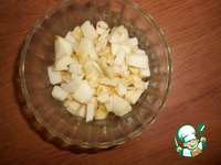 Яблоко вымыть, очистить от кожи и семян, нарезать мелкими кубиками. |