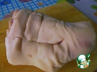 Обмазать рульку маринадом. Обратите внимание: постарайтесь заложить маринад в разрезы, которые вы сделали в коже и мясе. Так рулька равномерно пропитается вкусами маринада. |
