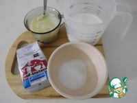 8гр дрожжей+ 250 мл теплых сливок+ 1 ст л сахара и 4ст. л муки, дать подняться до шапочки. |