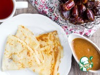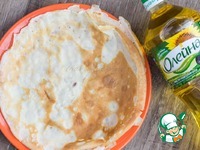 Нажарить блинчиков на сковороде с толстым дном, добавляя несколько капель масла. Из этого количества теста получится около 5-7 блинчиков |