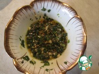 Приготовить заправку: мяту и чеснок мелко порубить, горчицу развести уксусом, оставшимся от маринования лука, добавить оливковое масло все перемешать, посолить, поперчить. |