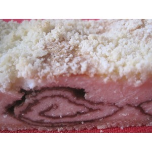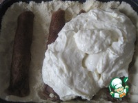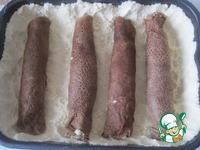 Сворачиваем рулетом и кладем в форму на тесто. |