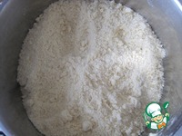 Муку смешиваем с сахаром, добавляем холодное натертое на терке масло. |