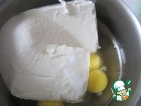 Готовим начинку. Творог смешиваем с сахаром, яйцом, ванилином, сметаной и мукой. |