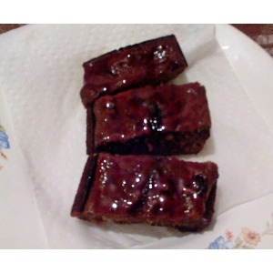 Когда наш пирог немного остынет, равномерно смазываем его конфитюром (можно джемом или вареньем, зависит от вашего вкуса, но с конфитюром он смотрится блестяще и симпатично).