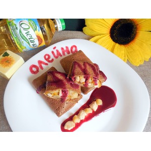 Описание: Лук придает блинчикам пряный вкус, который прекрасно сочетается с сочной начинкой из курицы и яблока, а острый малиновый соус завершает вкусовой ансамбль блюда. Яркое и необычное сочетание цветов и вкусов!