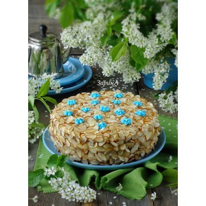 Собрать торт при помощи кольца для сборки тортов. Прослоить каждый корж кремом. Оставить крем для отделки поверхности торта. Дать торту пропитаться в холодильнике в течение 2-3 часов. |
