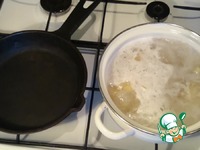 Добавляем вино и выпариваем. Убираем чеснок. |