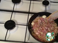 Пока тальятелле варятся, наливаем в сковороду оливковое масло и выкладываем нарезанный лук. Добавляем тимьян. Кладём слегка раздавленный чеснок и не забываем помешивать макароны. |