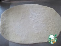 Баба раскатала дрожжевое тесто овальной формы. |