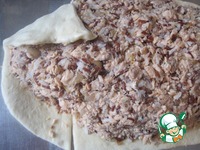 Дед положил рыбный фарш, баба подрезала тесто и сформовала голову рыбе. |