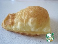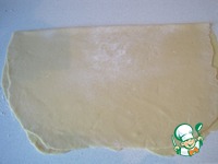 Муж раскатал тесто в лепешку толщиной 1-2 мм., сложил пополам. |
