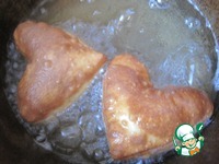 Пышки в процессе жарки надулись и в середине образовалась пустота. Можно и так съесть, посыпав сахарной пудрой, но мы решили наполнить кремом. |