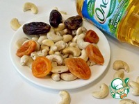 Для начала мы зальем орехи кипяченой водой, чтобы они были полностью покрыты и оставляем минимум на два часа. Тоже самое сделаем с курагой и финиками. Воду слить и вылить. |