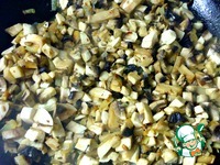 Собираем блинчики. На один блин выложить столовую ложку ветчинно-грибной начинки. |