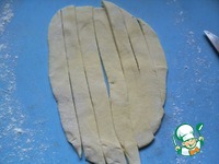 Лепешку разрезать на полоски (тут булочки, будущие, без наполнителя). |