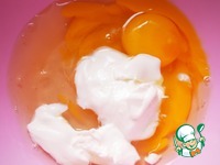 Яйца вбить в миску, добавить сметану, взбить венчиком. |