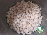 Тем временем приготовим начинку. Белую фасоль надо заранее замочить в воде, а затем отварить. |