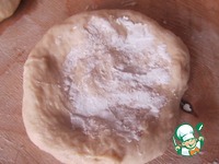 Перед тем как положить начинку посыпаем каждую лепешечку крахмалом, чтобы предотвратить вытекание сока с начинки. |