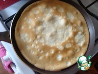 Жарим блины. Из этого теста получилось у меня 5 шт блинов для пирога D-24 см. Этот D мне как раз подходит под форму для пирога и нам нужно ровно 5 шт блинов. |