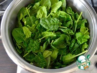 Время от времени перемешивая, дать шпинату "привянуть", т. е. приготовится. Он очень сильно уменьшится в объеме и потемнеет. |