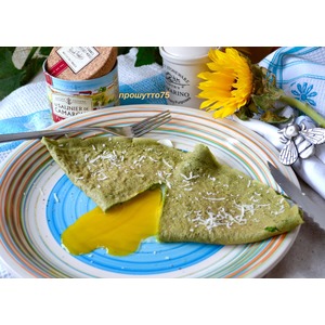 Яркие, "изумрудные" блинчики из шпината готовы. Их можно начинить любой несладкой начинкой по Вашему вкусу... А можно приготовить яичницу в блинчиках (на завтрак или на ужин). |