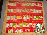 Выложить начинку, не доходя до краев. Я в этот раз делала с мармеладом. Немного пожалела, так как мармелад в некоторых местах вытек. |