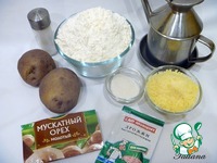 В миске смешайте муку, дрожжи, мускатный орех и пармезан. В ведерко хлебопечки влейте картофельную кашицу, оливковое масло, добавьте мучную смесь. Включите режим хлебопечки "домашнее тесто". |