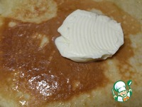 Выложить две-три чайных ложки конфитюра и распределить его по всей поверхности блина. Повторить шаги со всеми блинами, кроме последнего. |