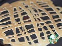 Выпекаем блины в виде сеточки на сухой и раскаленной сковороде. |