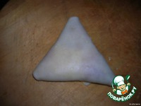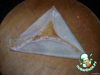 Свернуть края блина в виде треугольника, обжаренной стороной во внутрь. |