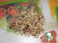 Грецкие орехи поджарить на сухой сковороде. Остудить и нарезать. |