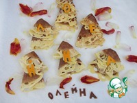 Смазываем сковороду маслом. В середину наливаем шоколадное тесто, а по краям формируем ажурные края. Обжариваем с двух сторон. |