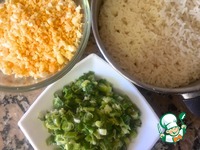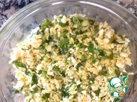 1. Яйца отварить и мелко порубить. Лук мелко порезать и слегка обжарить в растительном масле. Рис отварить до готовности. |